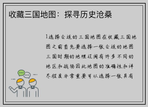 除了地图,收藏三国地图还可以搜集相关的书籍和资料。三国时期是中国历史上一个重要的时期,有许多经典的历史著作和研究资料可供参考。通过收集这些书籍和资料,可以更加全面地了解三国时期的历史、文化和人物。